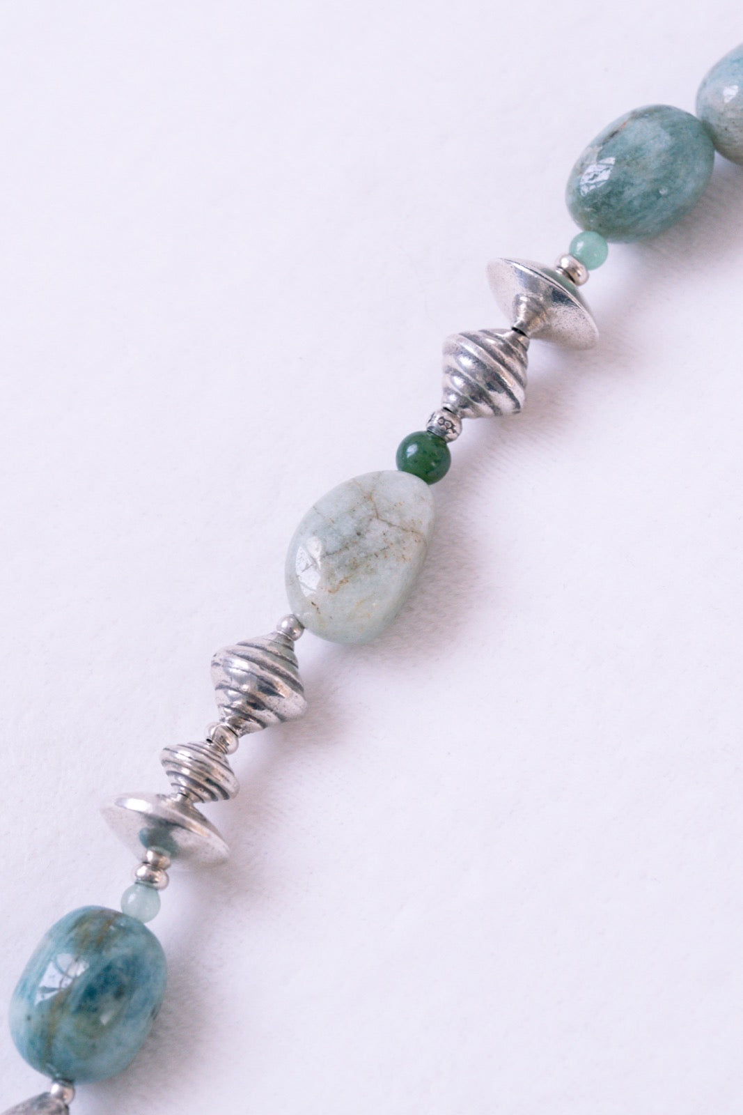 Mon travail a énormément évolué au fil des années mais mon arrivée en Asie a marqué un tournant dans ma créativité. S'ensuit une longue période de voyages qui influencent mon esthétique, mais ce qui change vraiment mes créations, c'est ma rencontre avec les pierres. C'est en Inde que je suis tombée amoureuse. Je suis revenue avec de magnifiques Lapis Lazuli et mon premier collier de pierres gemmes est né. Ce bijou est devenu mon talisman, il m'a fait me sentir forte, ancrée et en paix. Cette expérience positive m'a rendue très curieuse, j'ai donc décidé d'intégrer davantage de gemmes dans mes créations. J’ai vite réalisé le lien très particulier que les pierres entretiennent avec nous et les immenses avantages qu’elles possèdent et qu’elles sont si désireuses de partager.